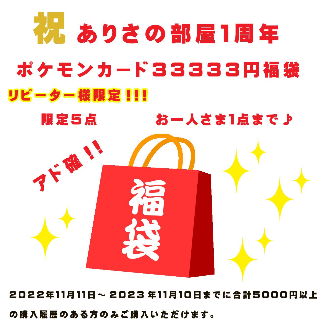ありさの部屋 1周年記念 ポケモンカード アド確 33333円 福袋 リピーター様限定 ポケカ シュリンク付 未開封BOX シングルカード など